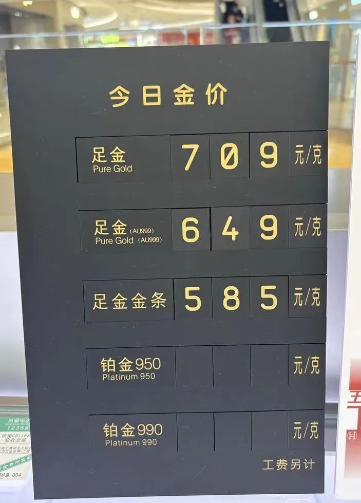 多个品牌黄金目前报价重回“5时代”。在一家周大生门店,销售人员表示,假期黄金每克优惠100元,优惠后599元/克,工本费另算。除了门店活动,商场针对购金也有优惠活动。