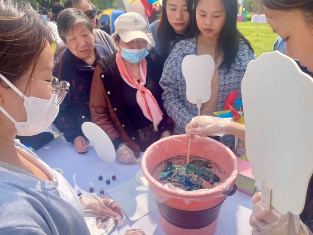 其中,非遗飘漆扇DIY制作亲子体验吸引了许多居民的目光,老师现场演示飘漆扇水面图案绘制手法。居民们兴致高涨,在老师的协助下,绘制出了属于自己的飘漆扇。“我们可以在此过程中带孩子领略中国传统文化的博大精深和艺术创作的独特魅力,也能在动手实践中进一步增进了亲子感情。”居民何女士表示。