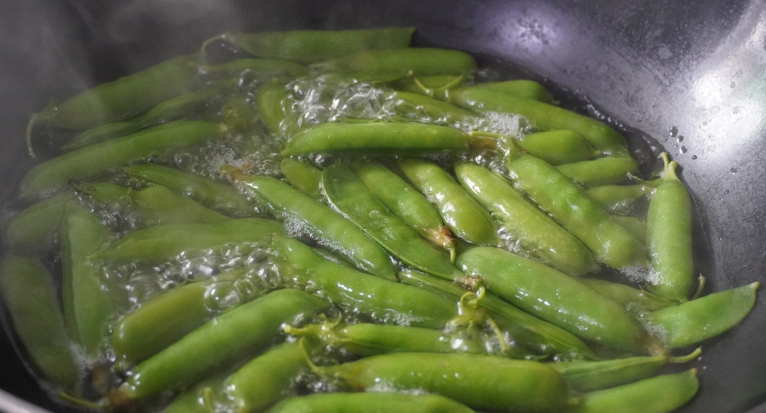 “豌豆做法多样,这次我打算做盐水豌豆,简单方便,而且能最大程度保留豌豆的原味。”蔡甫珍说。豌豆与毛豆一样,可以直接带壳煮着吃,有着独特的香味与清甜。蔡甫珍将摘下的豌豆细细冲洗一番后,直接倒入锅中,加入适量的清水和盐,开火慢慢煮,让调味料充分融入豌豆荚。