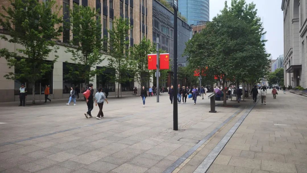 今天的天气与昨天基本上是复制粘贴一般,温度相似,体感相似,天空的状况也基本一样,街头的行人们俨然进入了夏季模式,短袖上阵的不再少数,看上去清清凉凉,不少市民已经进入防晒模式,墨镜、阳伞不离身。南京路步行街延续了假期里的高人气,市民游客走走逛逛,春光无限好。