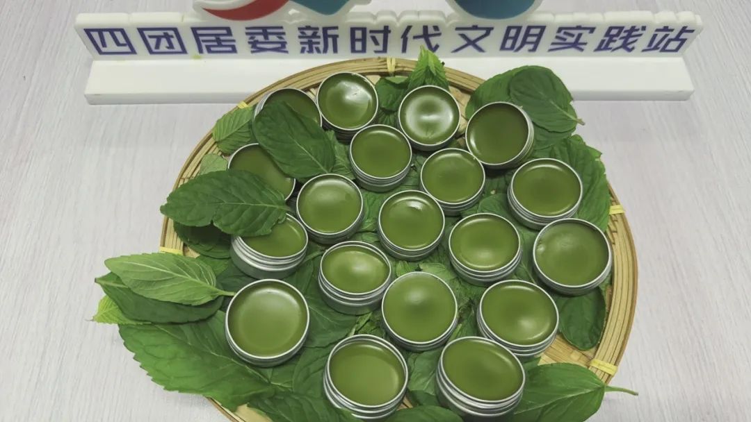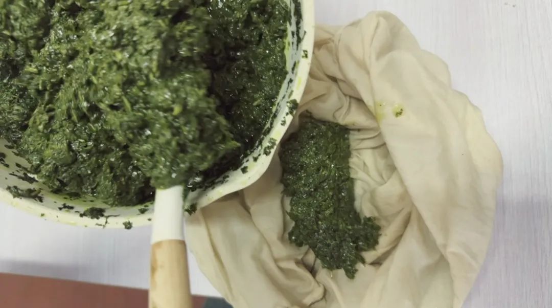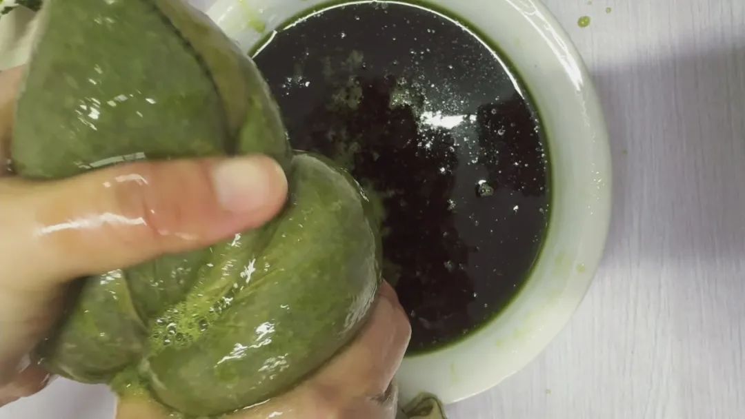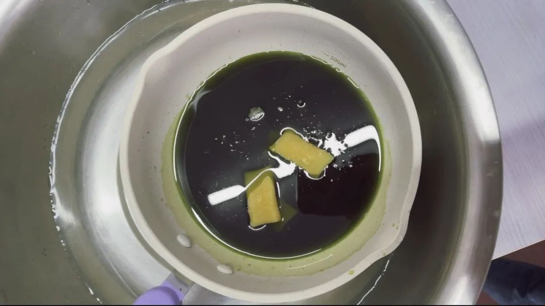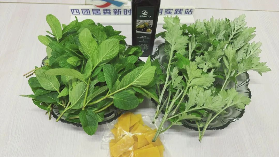 艾草薄荷膏,不仅清凉舒适,还有一股淡淡的艾草和薄荷的香气,仿佛置身于大自然之中,让人心旷神怡。而且,它还有舒缓蚊虫叮咬、皮肤瘙痒的功效哦!无论是户外野餐还是运动,它都是你的最佳拍档!现在正值艾草季,快来学着自己做个纯天然艾草薄荷膏吧! 制作方法 准备材料:艾叶250g、薄荷叶250g、橄榄油500ml、可食用蜂蜡75g 摘取薄荷叶、艾叶各250g并清洗干净。 将艾草叶、薄荷叶、橄榄油少量多次放入搅拌机中搅碎。 放入锅中焖煮两小时,将叶片煮至软烂。 放凉后倒入布袋中。 将汁液挤出。 汁液静置一晚,萃取艾草薄荷精油。 用勺子将萃取好的精油舀出。 放入蜡片,隔热水搅拌,直至其完全融化。 罐装进容器中,等待其温度下降。 随着温度下降,艾草薄荷膏由深绿色变为浅绿色并凝固成型。 Tip:最后罐装时一定要趁热倒入容器中哟!