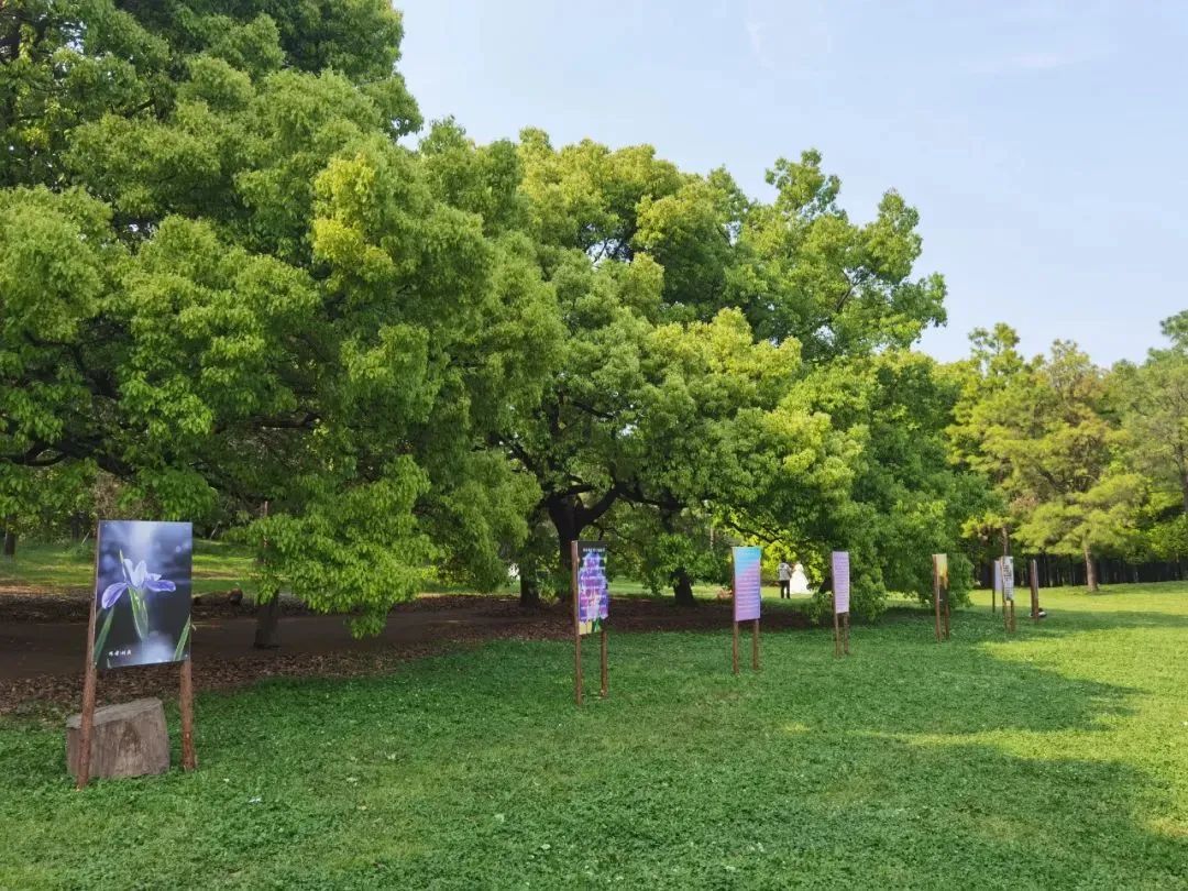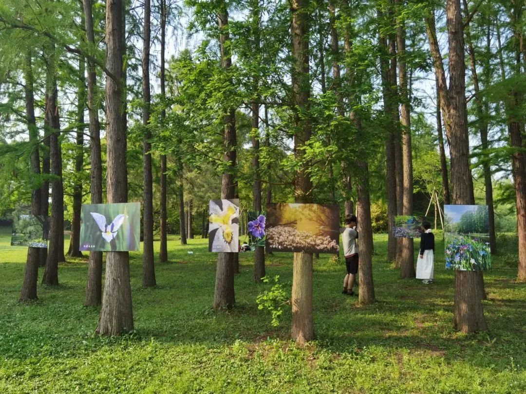 科普文化展示区布设科普展板,便于游客学习了解鸢尾花的生长习性、文化意义、生态角色等知识。同时,展出第一届鸢尾文化节摄影大赛征集的鸢尾摄影作品,每一幅作品都是对鸢尾美丽瞬间的定格,传递出对自然之美的无限赞美。