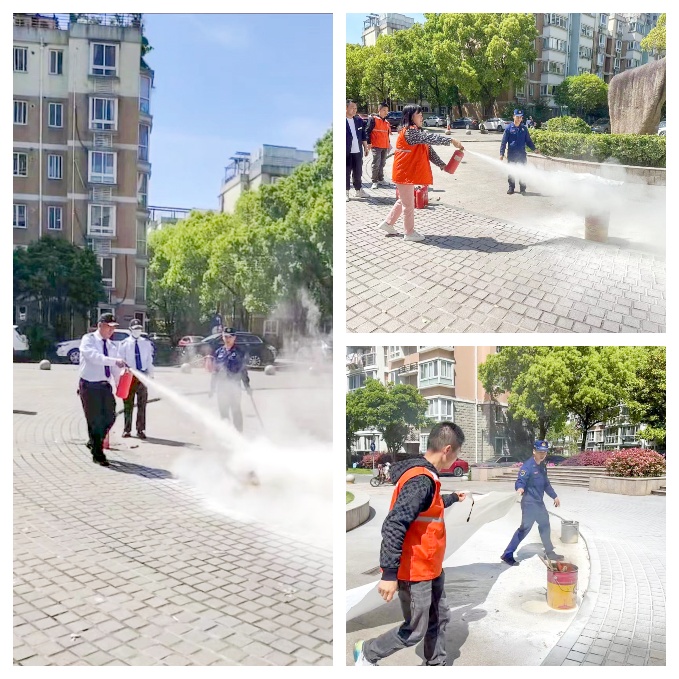 随后,员工代表和居民代表在消防教官的指导下,开展了灭火器材使用演练,分组、分批用灭火器和灭火毯扑灭初期火源,其他演练人员在一旁认真观察,同步掌握。