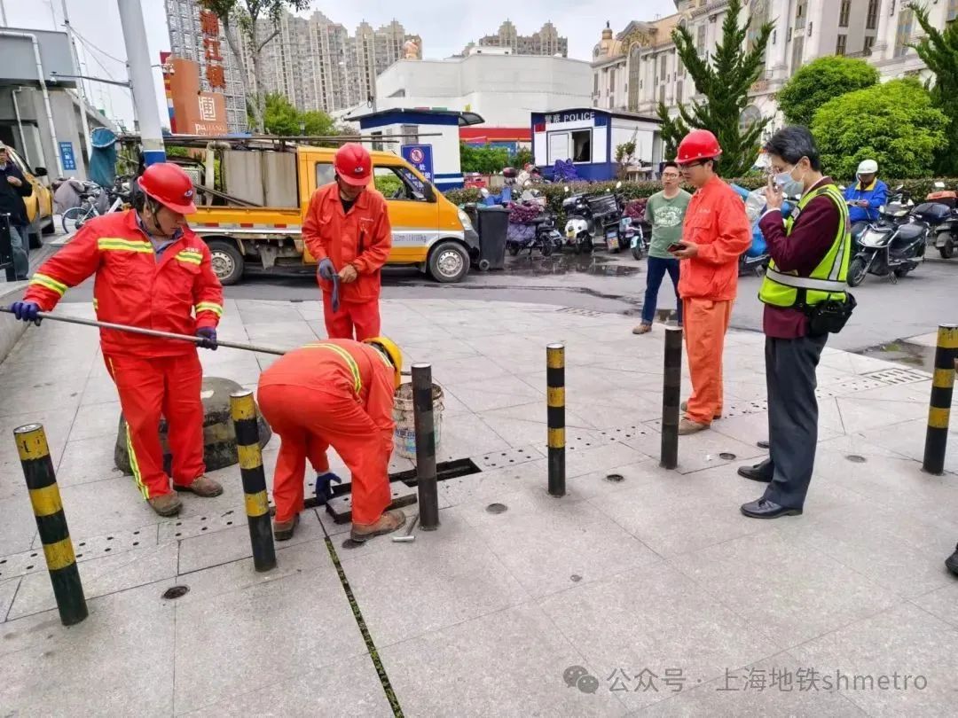芦恒路站毗邻公交枢纽站,车站和驻站民警联合上海国际珠宝中心和芦恒客运综合枢纽管理单位对三方接壤工作区域进行了联合巡视,对连接部位集水泵、集水井及防汛板等进行了检查。