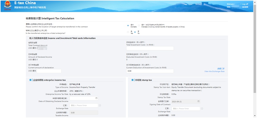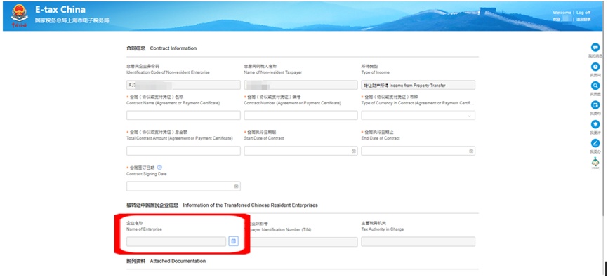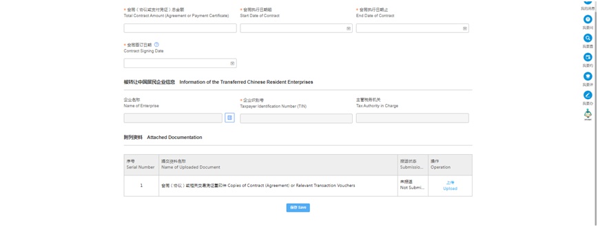 选择“新增合同”,根据表式填写合同信息,录入“被转让中国居民企业信息”,并上传相关附件资料。