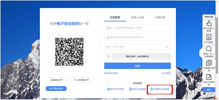 选择“非居民企业登录”,输入相应的“非居民企业身份码、邮箱号、密码”。