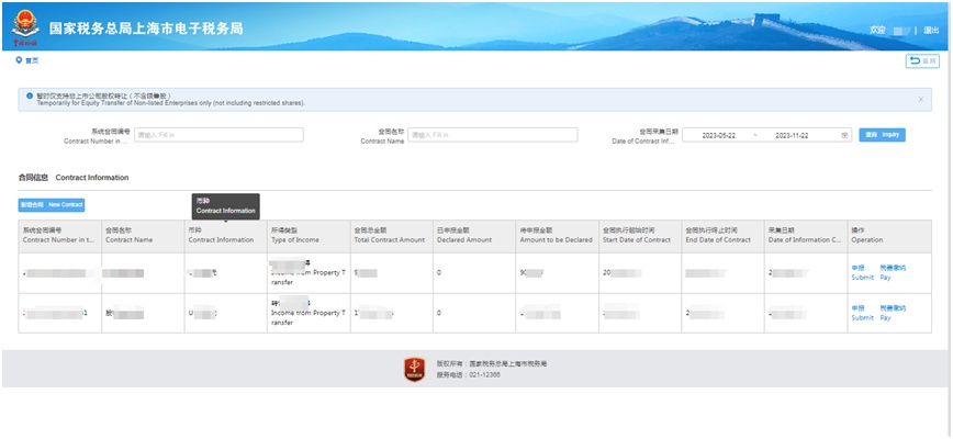 合同新增完成后,选择对应的合同进行申报。可以对企业所得税和印花税进行单独分开申报,也可以一齐申报。对同一个合同,可以根据实际支付情况进行多次申报。录入完成后,提交保存即可。