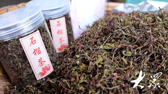 为了产量提升,除了手工炒茶,更多的茶叶则是通过机器炒制而成。“因为石榴茶采摘的时间有局限性,再加上每批发的芽比较少,手工茶一年产量很少,也就几百斤的量,机器生产会多一些,一年大概在四千斤左右。”单贝贝如是说。