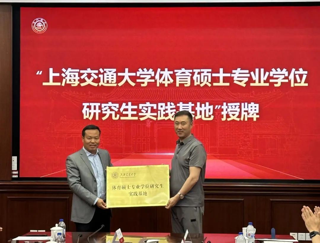 孔立体向徐汇区社会体育管理指导中心颁发“上海交通大学体育硕士专业学位研究生实践基地”铜牌。