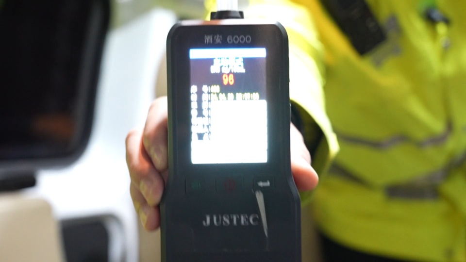 当驾驶人摇下车窗的时候,一股浓烈的酒气扑面而来。民警遂对驾驶人进行了酒精呼气检测,呼气值为96mg/100ml,此人涉嫌醉酒驾驶机动车。