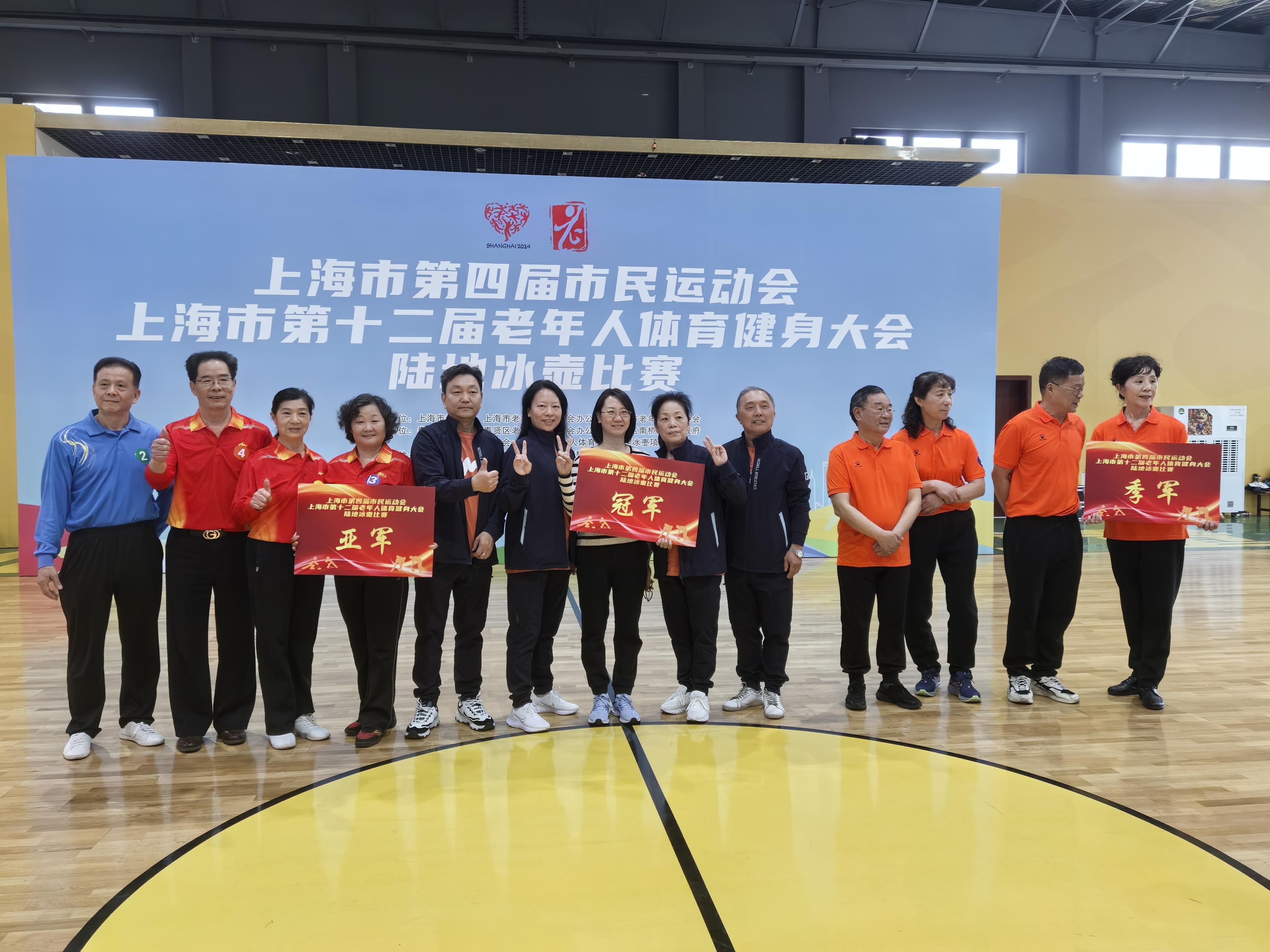 为进一步丰富中老年群体的体育活动,提升其健康水平,由上海市体育局、上海市老龄工作委员会办公室、上海市老年人体育协会联合主办的2024年上海市第四届市民运动会暨上海市第十二届老年人体育健身大会陆地冰壶比赛于5月8日在奉贤区体育中心篮球馆正式开赛,全市有12个区的16支队伍、约190名运动员参与了激烈角逐。代表黄浦区老体协参赛的豫园街道冰壶队通过努力,最终在本次比赛中脱颖而出,共获得2项冠军和1个第三名的好成绩。