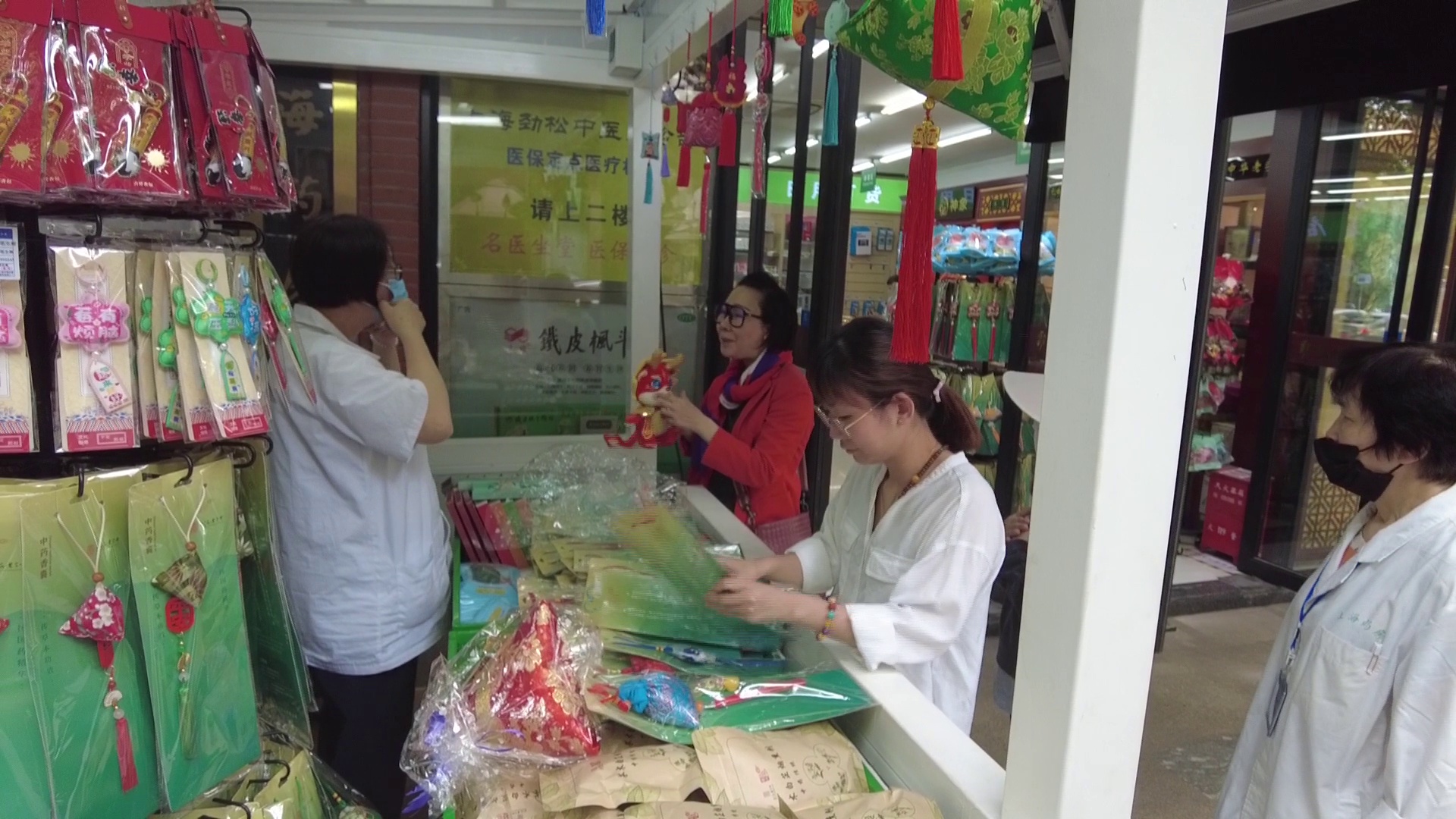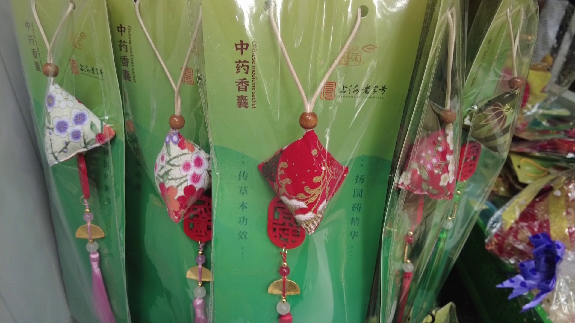 上午,记者在淮海路上的上海药房劲松参药店看到,这里专门辟出了老字号“徐重道”香囊专区,造型别致、款式多样的香囊陈列其中,前来挑选购买的市民络绎不绝。市民李女士告诉记者,看到这里有很多香囊,想着买几只回去挂在家里可以驱蚊驱虫,还可以给小孩挂在书包上。立夏过后,天很热,家里的蚊子也出现了,正好淮海路有香囊,蛮好的。