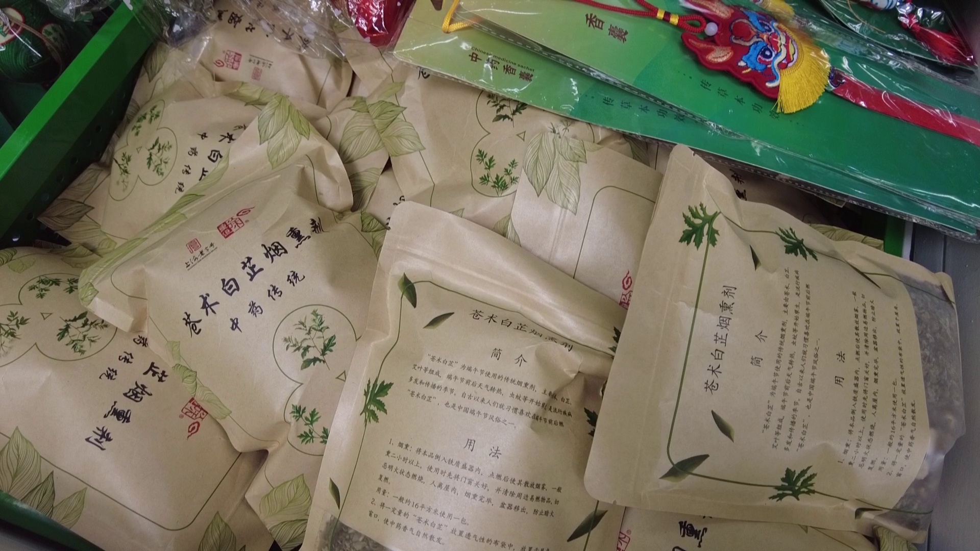 对于一些市民习惯用烟熏剂,药房员工还会指导消费者烟熏剂的使用方法。“这个仓术白芷以前是烟熏剂,现在很多房子不需要熏了,你就可以在上面戳几个洞,放在厨房间、阳台或者窗台上。也可以放在盆里,摊开来,驱蚊驱虫。如果要熏的话,最好垫块砖头,上面放盆,这样安全。在盆里面熏,门窗要关掉的,人不要在屋子里,一般两个小时就可以了。“
