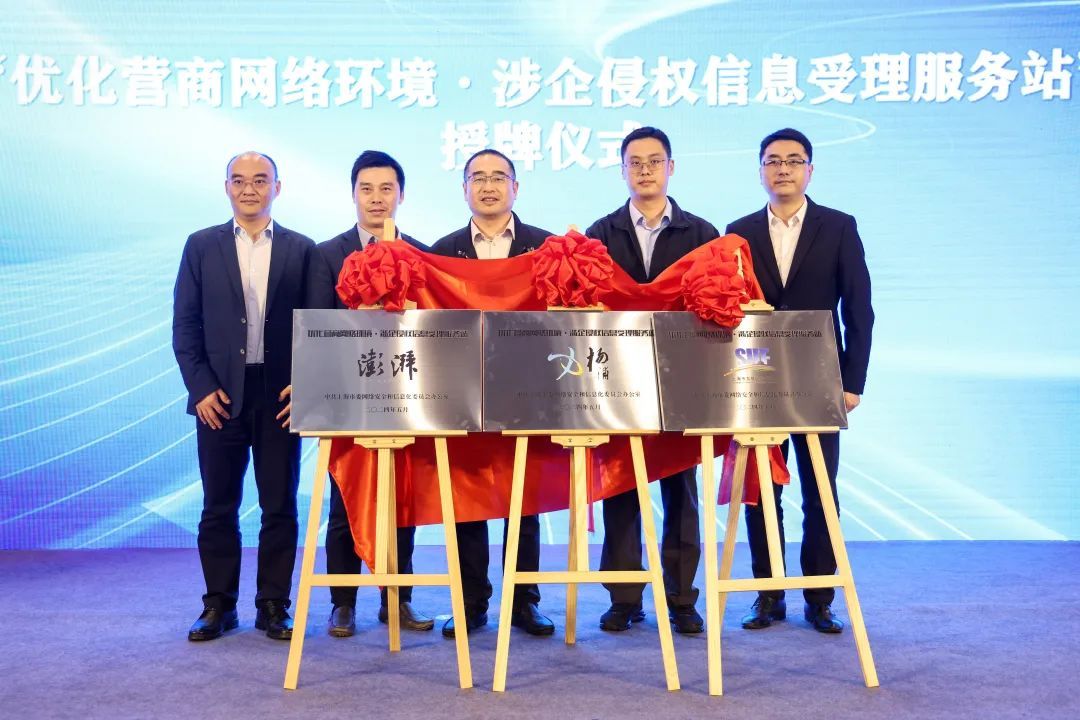 现场,“优化营商网络环境·涉企侵权信息受理服务站”正式揭牌,杨浦区委网信办、上海市互联网业联合会、澎湃新闻获授牌。
