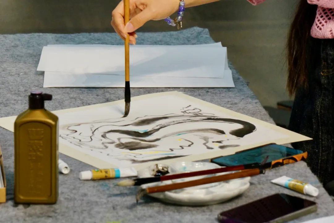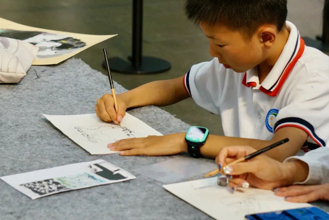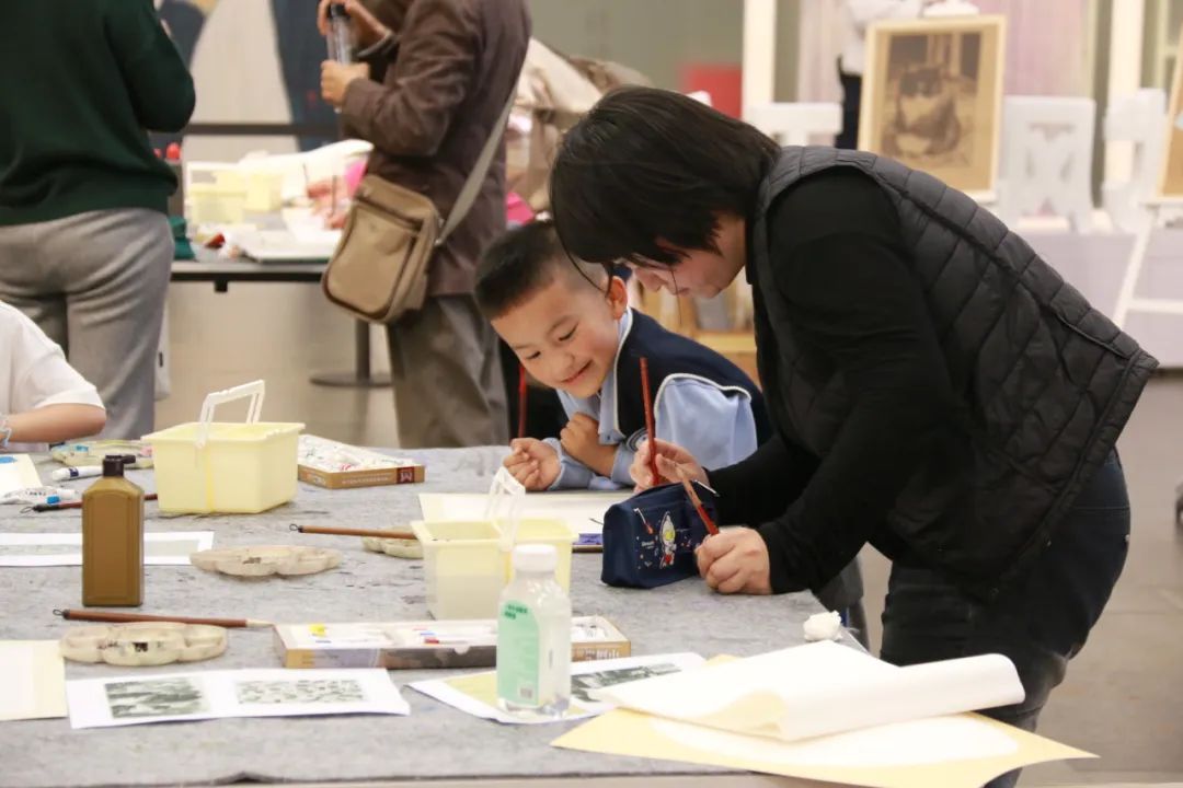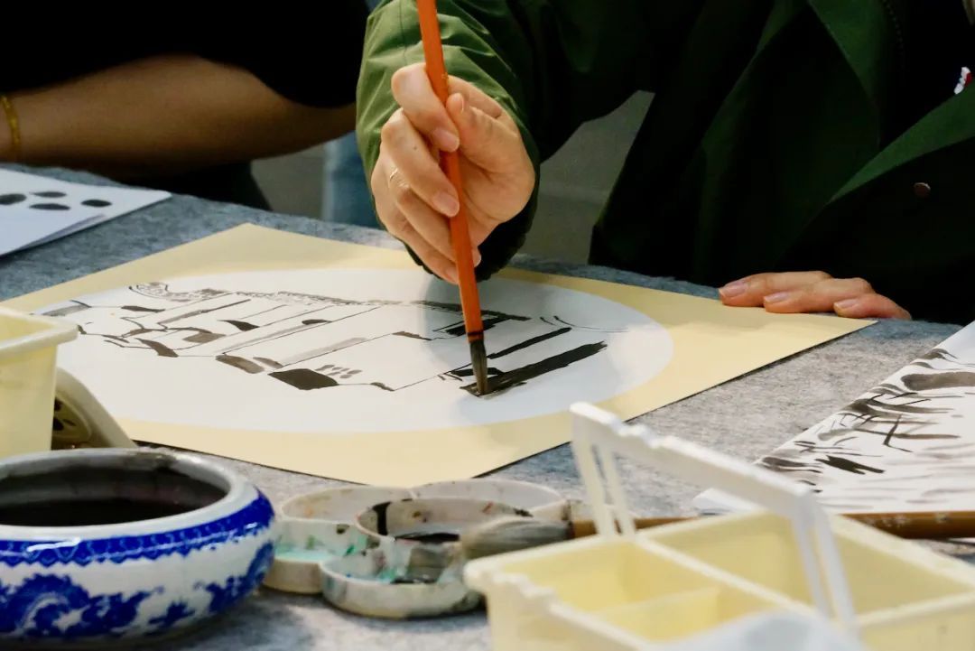 在“我和妈妈的美好瞬间”水墨实验室中,参与者们通过沈虎老师的指导,聚焦吴冠中笔下的江南水乡和城市风光,用水墨画表达了对母亲的爱,用画笔定格与妈妈共度的美好时光。