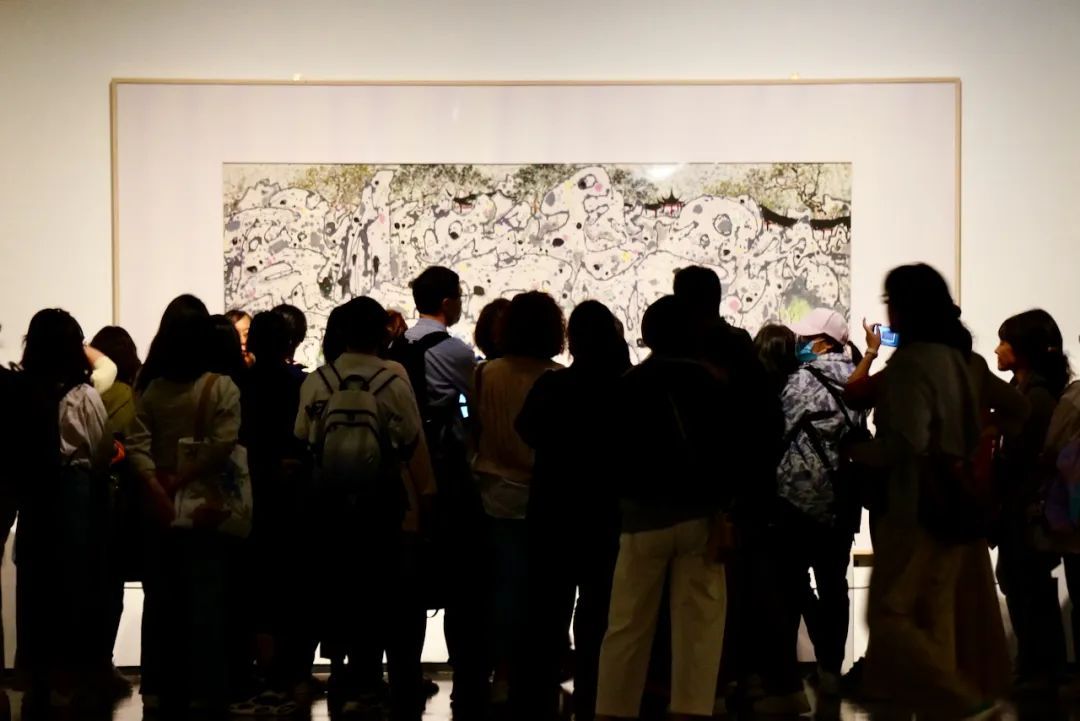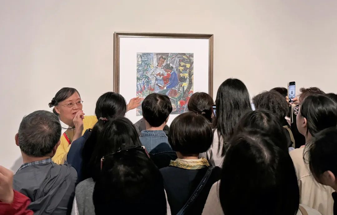 当晚“中国式风景”展厅内,三场免费公益导赏如期开讲,资深志愿者为观众带来专业的导赏服务,观众们流连忘返,专注地欣赏林风眠与吴冠中的艺术作品,感受中国式风景的独特魅力。有位来自杭州的游客慕名而来,为了追寻美的足迹,跨一座城,来欣赏这场史诗级艺术大展。