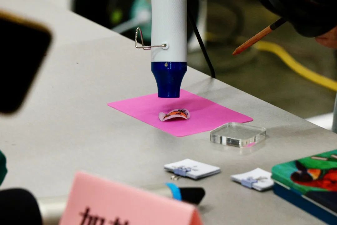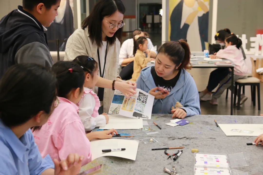 “‘热’爱妈妈——热缩片制作体验”也倍受欢迎,在指导老师李梅香的带领下,每一组家庭都用热缩片捕捉了彼此的爱和温情。孩子们从吴冠中画作中寻找灵感,在专用纸上画下对妈妈的“热”爱,随后观看它们在热力作用下缩小成一个精美的饰品,更是一份代表爱的礼物,场面温馨感人。