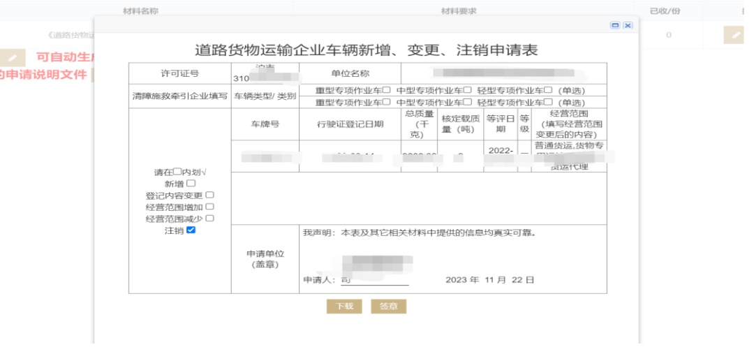 道路货物运输(除危险货物运输)道路运输证新增、变更(车辆注销)事项操作说明