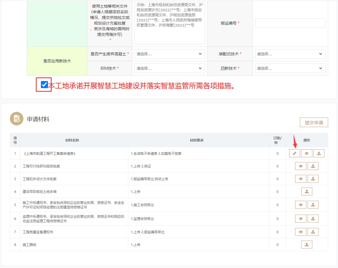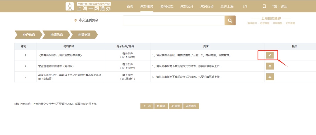 (3)系统自动生成申请表。根据材料列表里的内容依次上传所需的申请材料,确保所上传的材料真实有效。