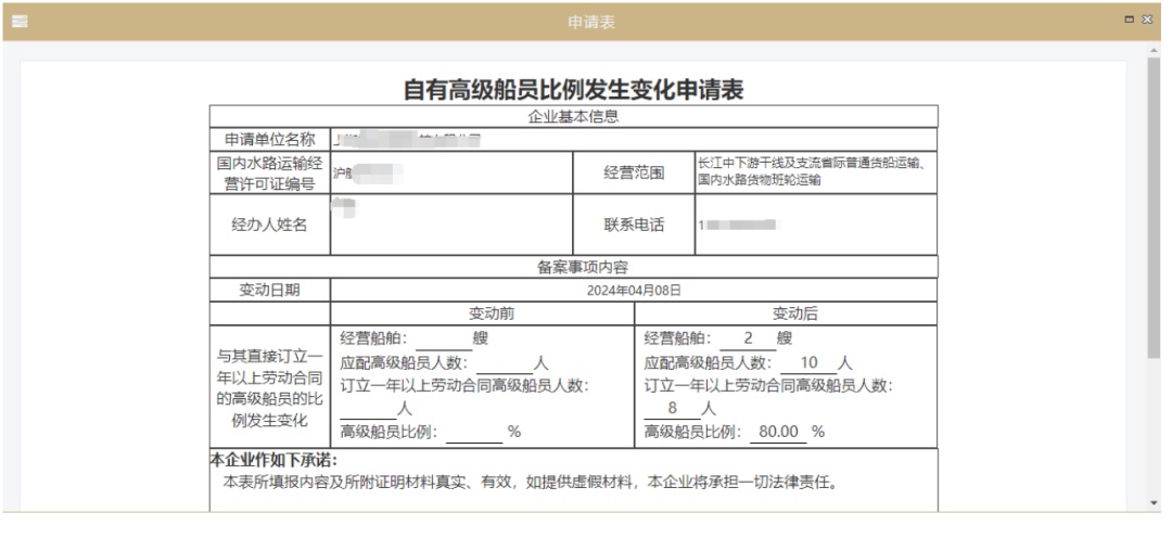(3)系统自动生成申请表。