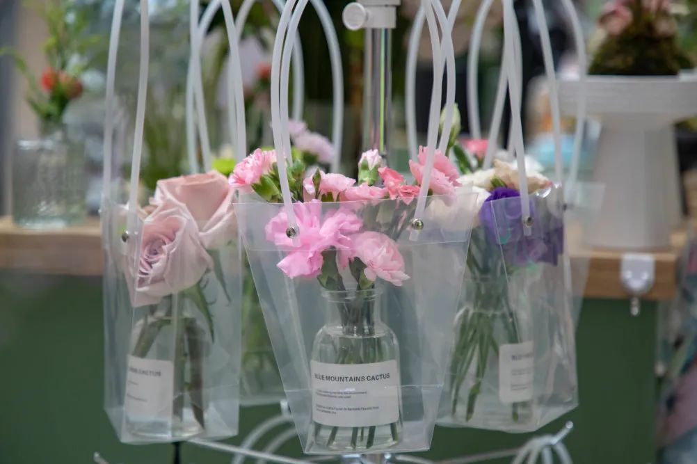 风格迥异的新中式鲜花抱抱桶、永生花摆件也是店内的特色。