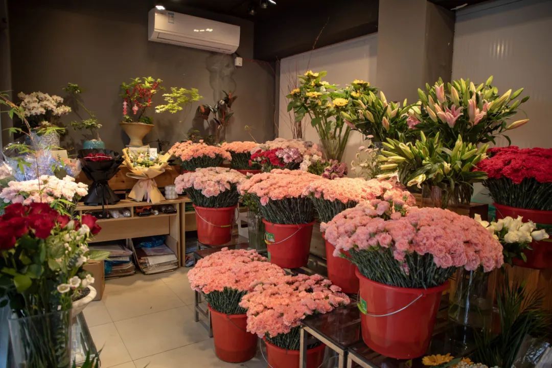 那时花开店内布置得井然有序,整齐划一地放置着不同品类的鲜花,而且价格实惠。临近母亲节,店内还特别定制了母亲节系列花束。