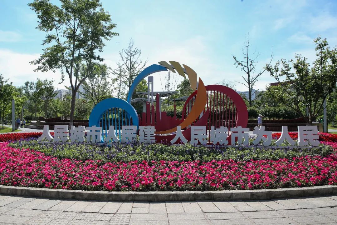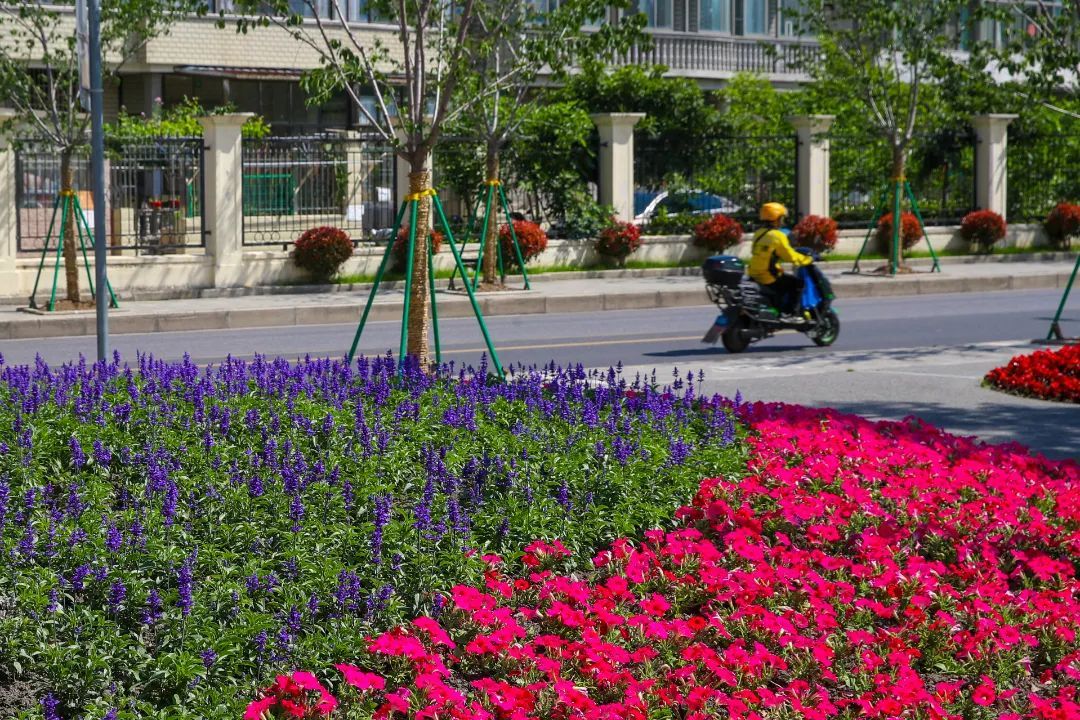九里亭街心花园风景如画,各类鲜花竞相开放,成为街道居民休闲游玩的好去处。