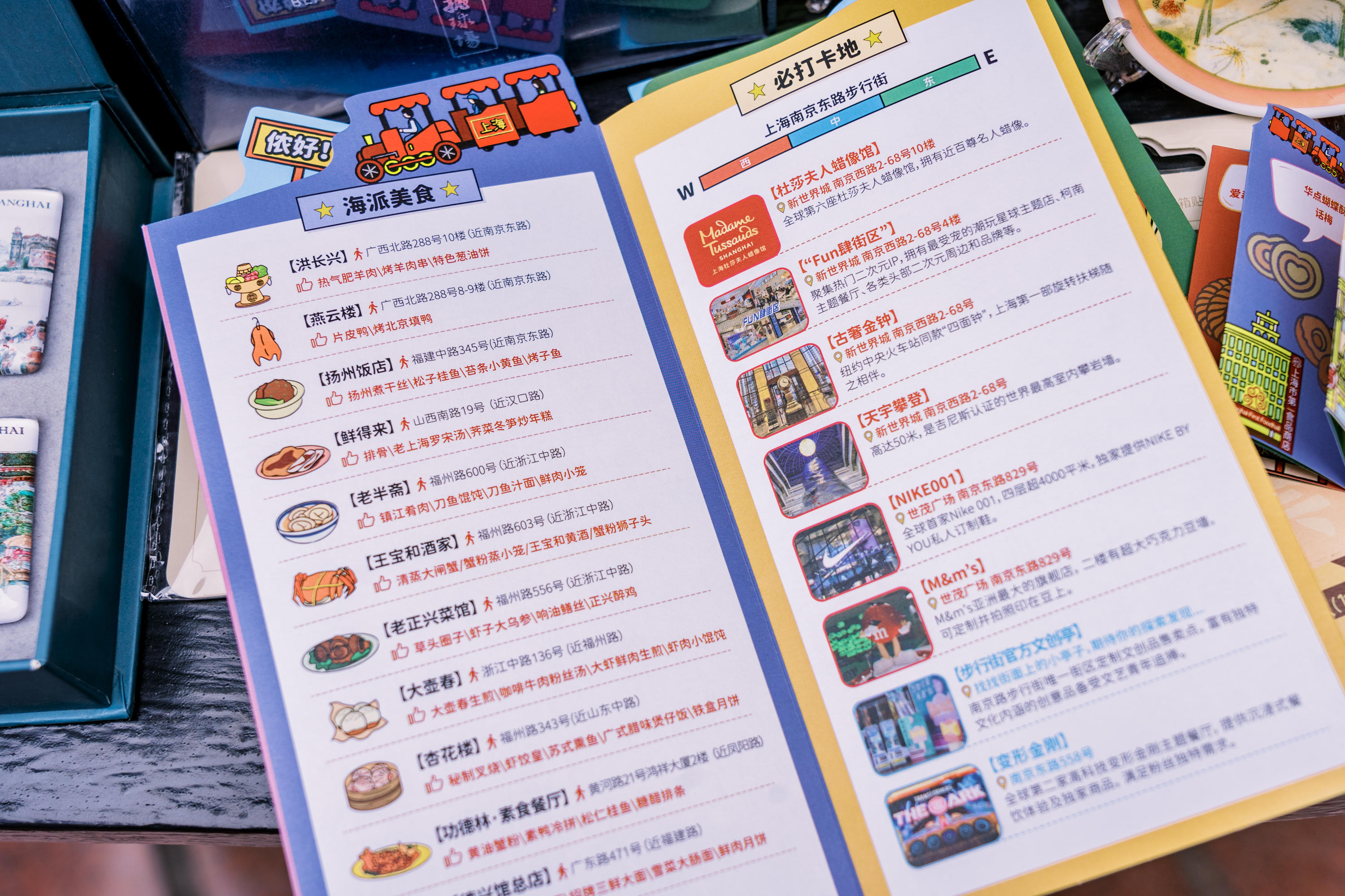 “五一”期间,来自山东的游客王先生在逛南京路时就购买了这份手绘地图。“不仅看起来很有创意,更是一本实用的旅行指南,而且还有街区老字号的优惠折扣。特别是mini版手绘地图和吃一口贴一张小贴纸,让小朋友游玩同时一路打卡一路吃不停。”