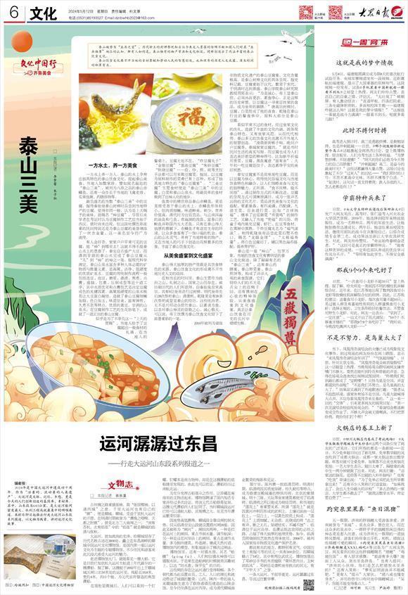 泰山被誉为“五岳之首”,历代帝王的封禅祭祀和古往今来文人墨客的传颂不断加固人们对其“五岳独尊”地位的认知。鲜有人知的是,泰山独有的物产资源和文化积淀,同样创造出了内涵丰富的泰山饮食文化。
