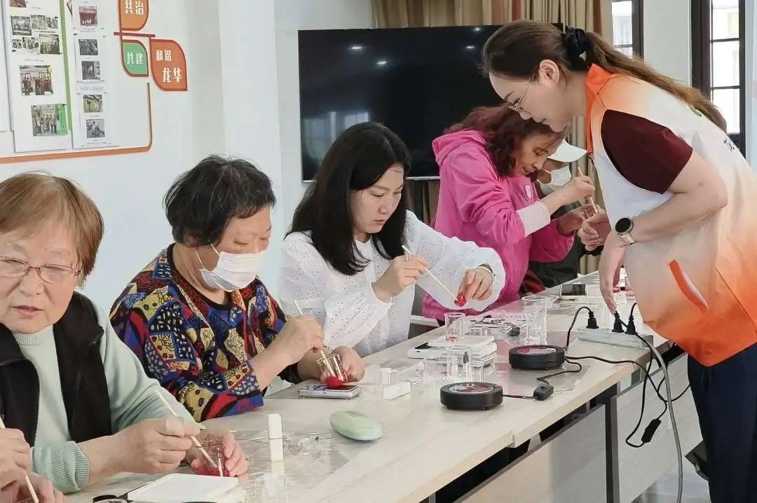 活动现场气氛热烈,居民们互相协助、精雕细琢,尽情体验着手工制作带来的愉悦。经过倒模、凝固、脱模等一系列工序,一支支色彩靓丽、造型精致的口红就完成了。