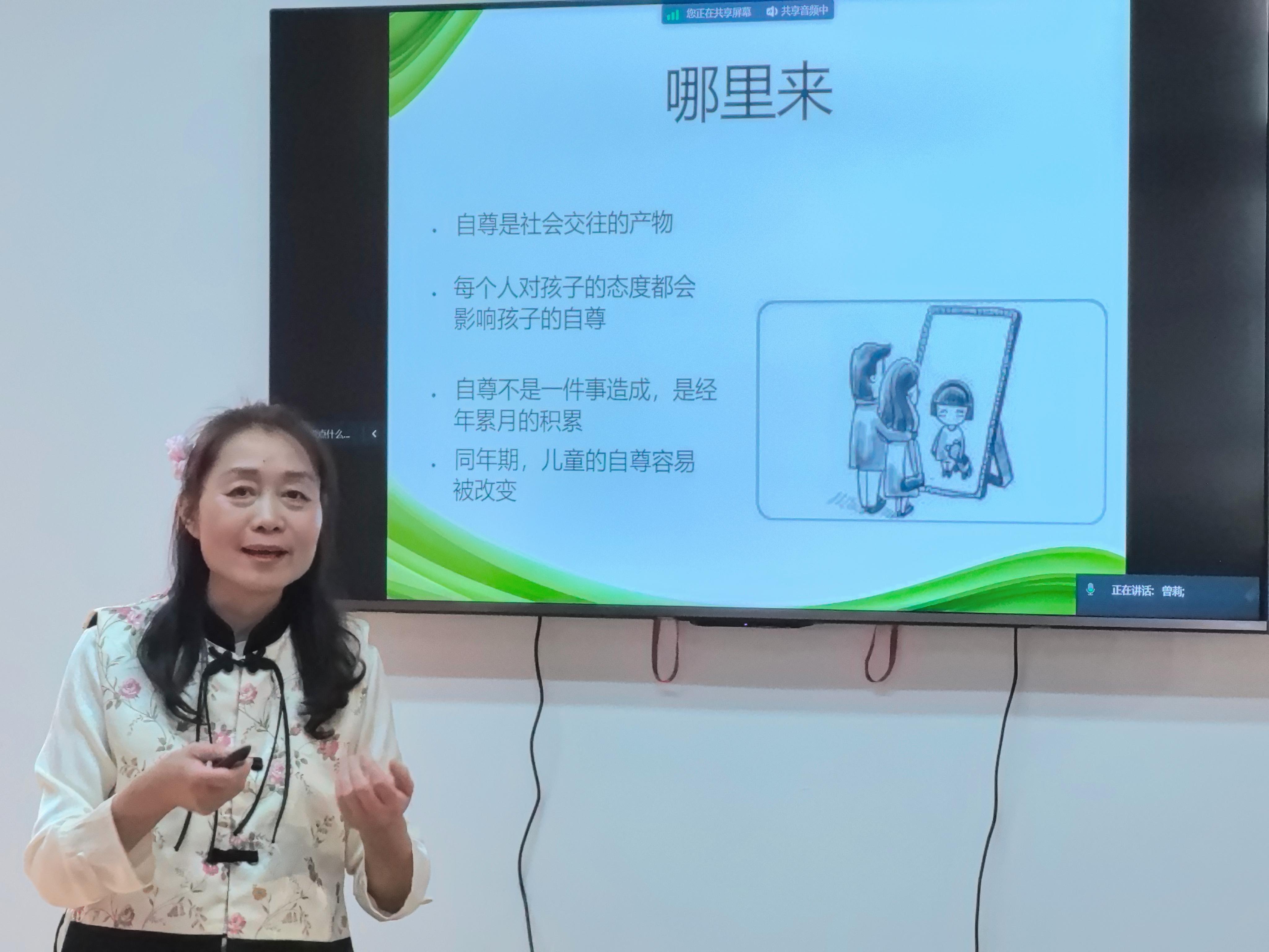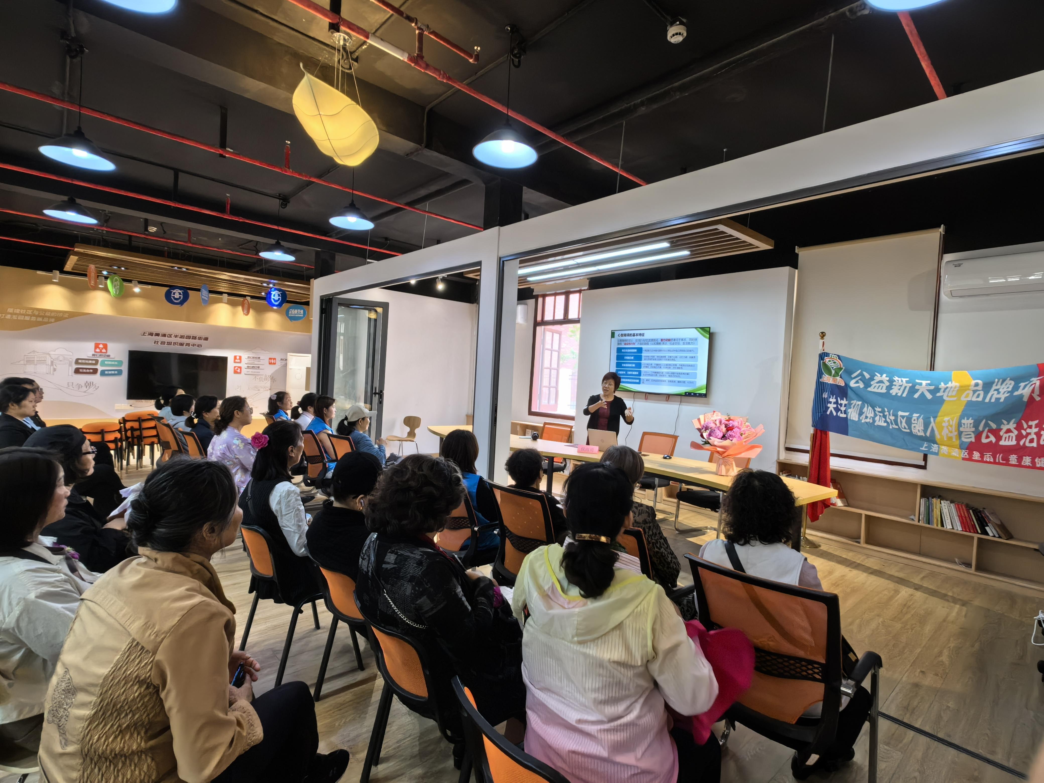 活动中,作为志愿者培育计划培育出的首批科普志愿者之一,候海甬女士担任主讲,介绍了如何营造一个包容、支持、和睦的共融环境,以更好地服务和支持心智障碍群体。上海黄浦区星雨儿童康健中心的主任蒋俐敏女士,在培训环节中对“引导孩子自尊自信的互动方式”进行了深入讲解。