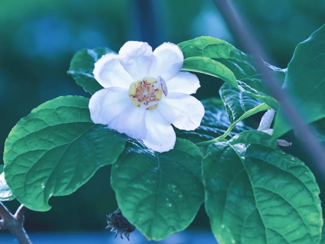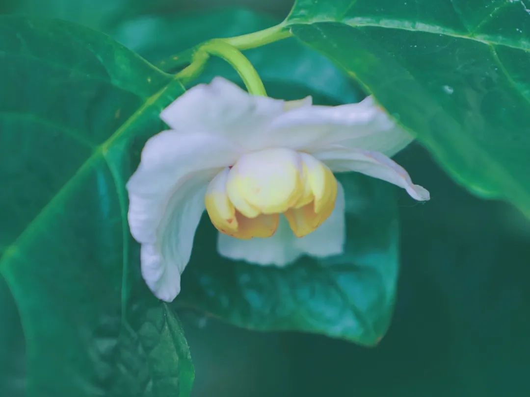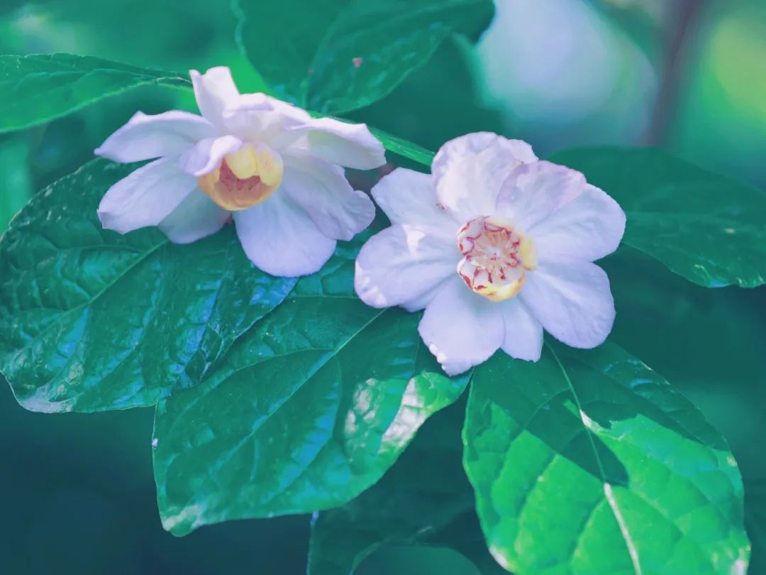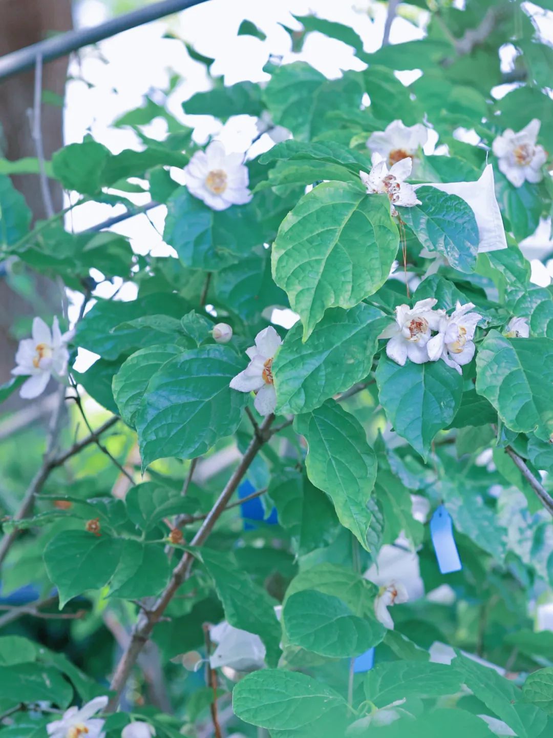 一朵朵淡粉白色的花儿点缀在绿叶之间,绿叶与花儿的碰撞,深深浅浅,洋溢着自然诗意。