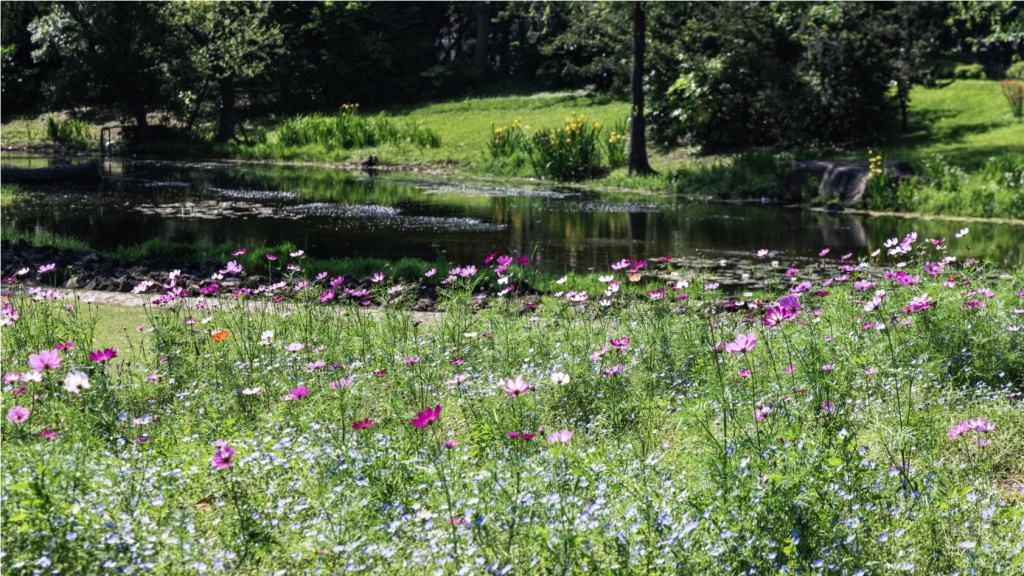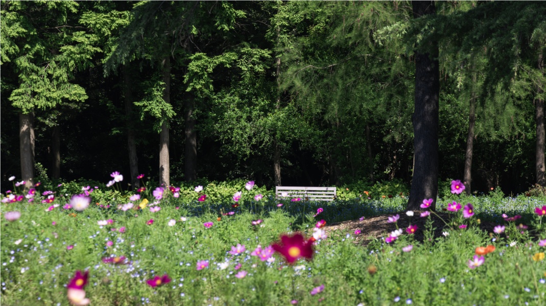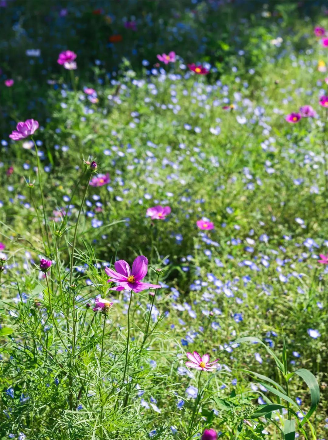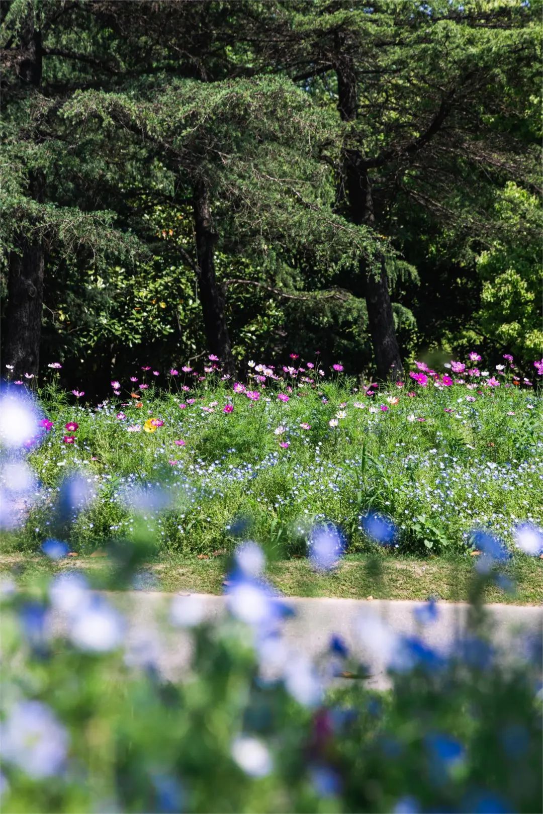 滨江森林公园的喜林草、波斯菊缤纷绽放