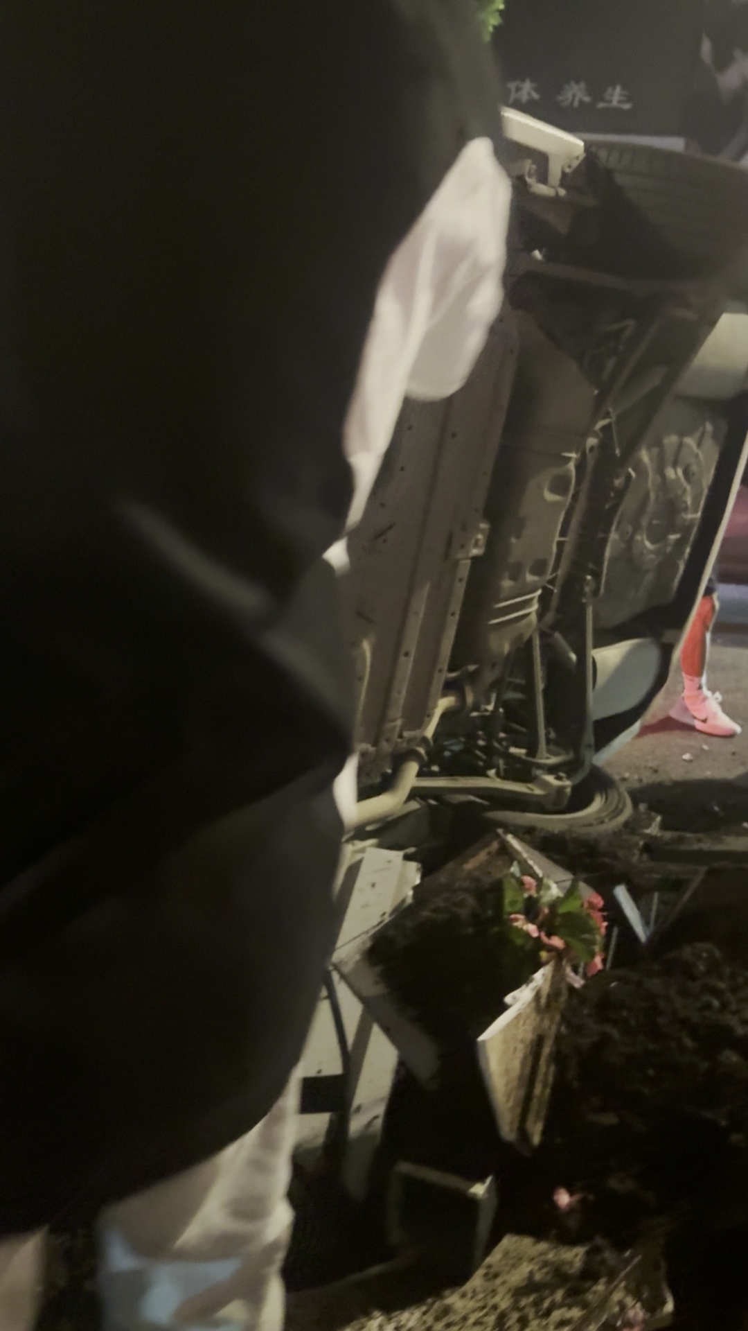 “那个网约车的师傅蛮好的,跟我们说没关系,救人要紧。我们在翻车的时候就让我的朋友赶紧打120,时间比较紧急,那个时候她的呼吸已经不是很顺畅了,她还有一点小小的声音,她说她想喝水,我就找了个水杯给她喂水,喂完水过后,她说要找她的手机给她丈夫打电话,我就通知了她的丈夫,跟她的丈夫说了去哪个医院,那个时候120已经到了,正在对她进行救治。”