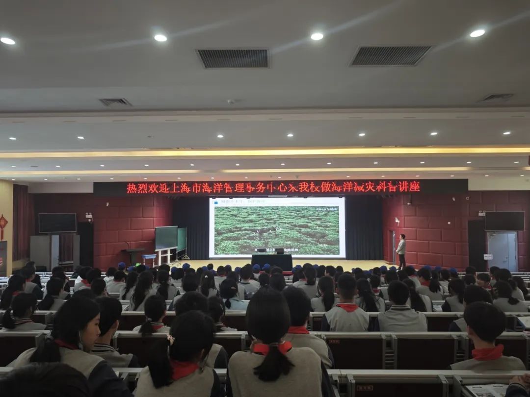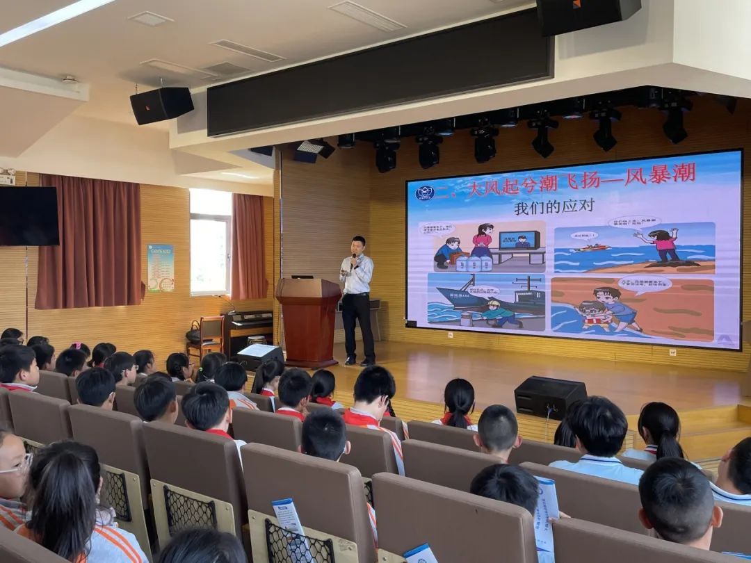 5月10日下午,海洋事务中心科普团队走进上海海洋意识教育基地金山区金卫中学,以《海洋灾害了解与防范》为题,为200余名学生做了科普讲座;13日下午,走进海洋意识教育基地金山区金山小学,通过直播方式为全校1700余名学生做了《认识海洋灾害,保护生命安全》讲座。两场讲座以图文和视频形式,向同学们介绍了海洋灾害中的风暴潮、海浪、海啸等海洋灾害成因、危害及防御措施等知识。同时,在学校设置了海洋灾害防御知识展板,并向学校赠送了40余本海洋灾害防御知识手册。
