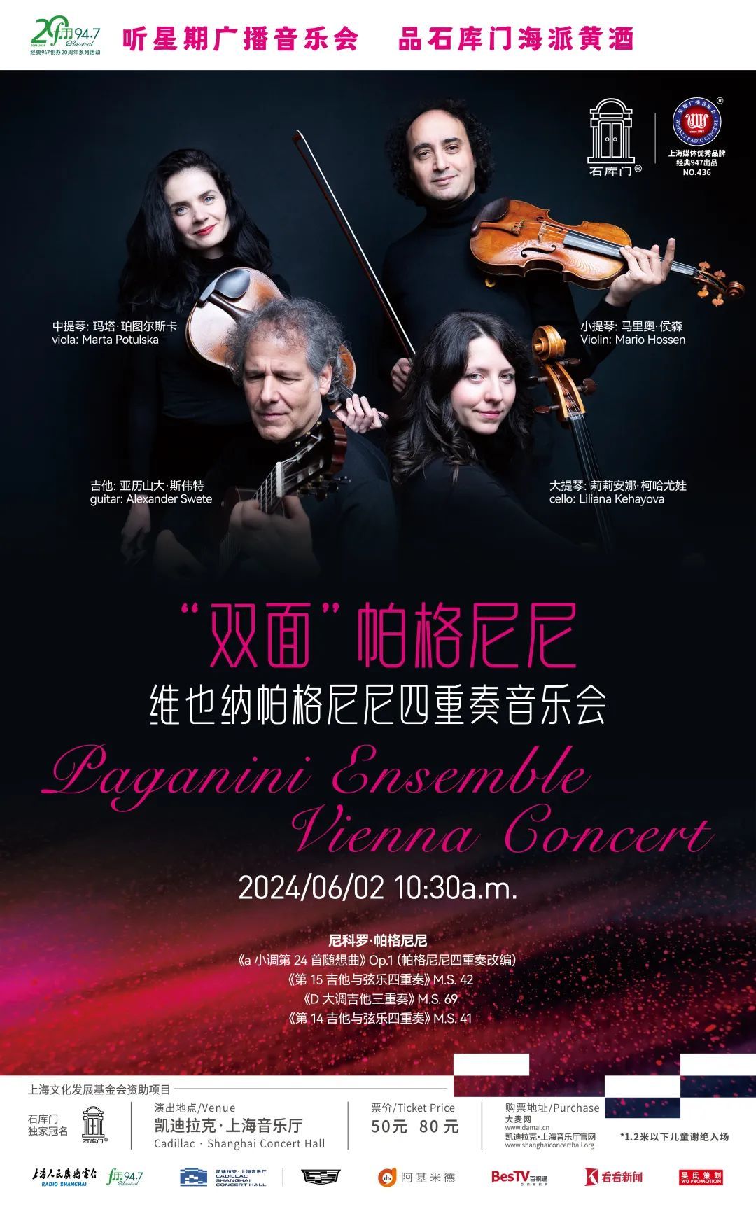 * 温馨提示:1楼左侧区域部分座位视线有遮挡维也纳帕格尼尼四重奏Paganini Ensemble Vienna