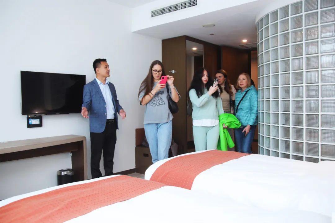 此次踩线活动中,俄罗斯旅行商还深度考察了金海湾国际饭店、国际海景城酒店、智选假日酒店等酒店,了解酒店设施和接待水平。不少场所已设置俄语标识、俄语菜单等,让俄罗斯旅行商大呼很贴心、很周到。