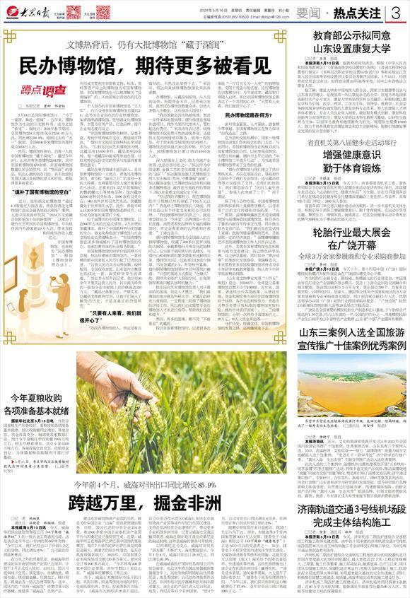 《山东省文物事业发展“十四五”规划》提出,到2025年,全省登记备案博物馆总数不少于1000家。近年来,国家、省连续出台各类政策,从建设用地、资金和税收等方面对非国有博物馆给予扶持。各市也在积极作为:青岛市为符合免费开放标准的博物馆发放补贴;潍坊市对获评国家一、二、三级博物馆的,分别一次性给予每馆30万元、20万元、10万元资金奖励等……