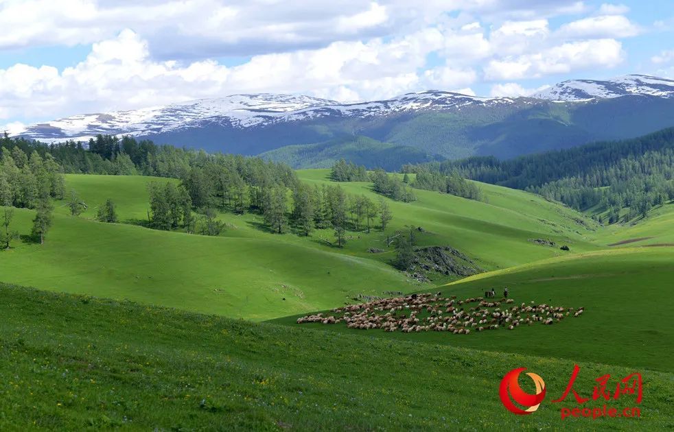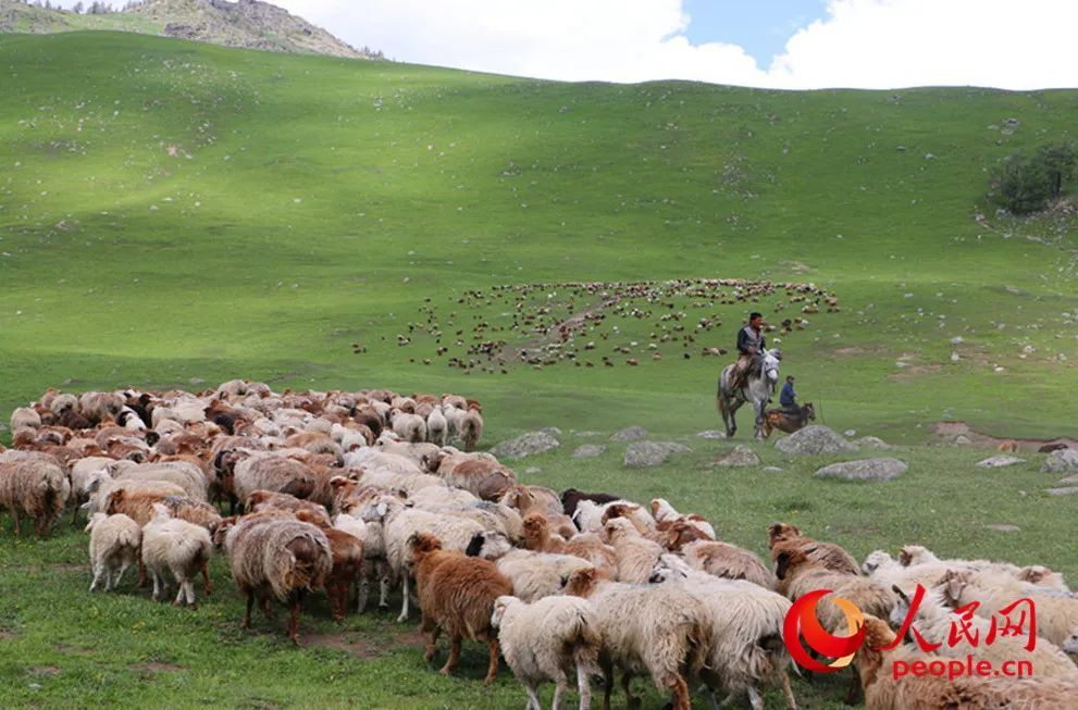 每年五至六月,新疆阿勒泰的牧民会骑着骆驼和马,驮着毡房、赶着牛羊,从春季牧场向北部阿尔泰山的夏牧场进发,开始新一年的转场。成百上千的牛羊在牧民的引导下翻山越岭,构成了一道流动的草原风景线。