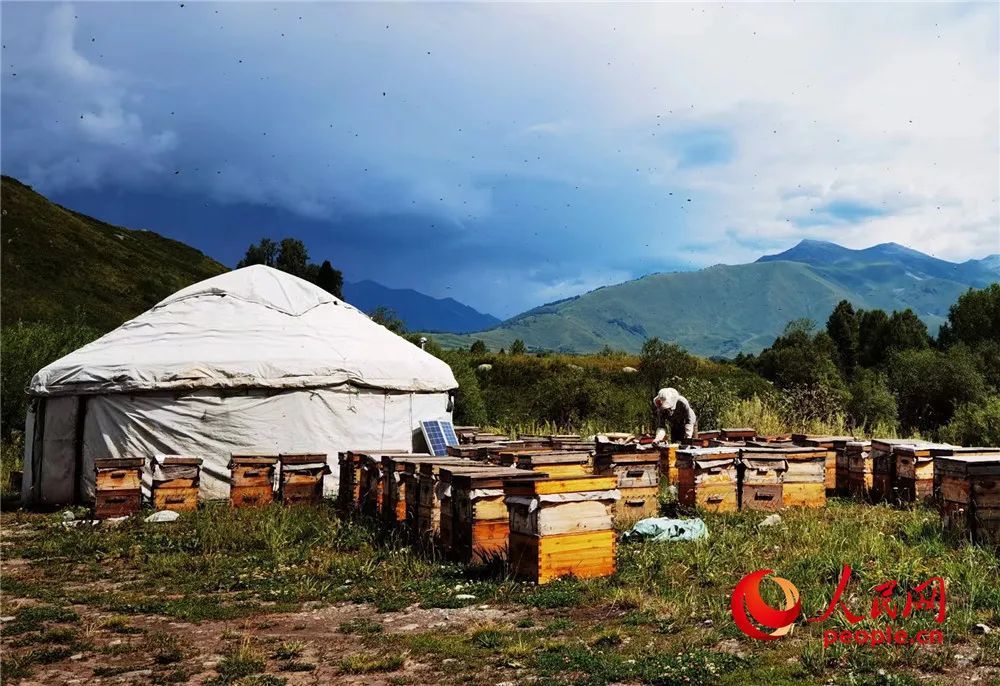 图为喀纳斯的养蜂女在整理蜂箱。人民网记者 韩婷 摄