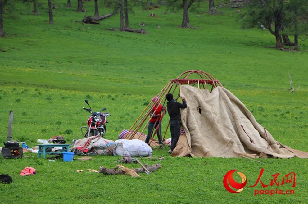图为阿勒泰牧民转场途中搭建临时住处。人民网记者 韩婷 摄