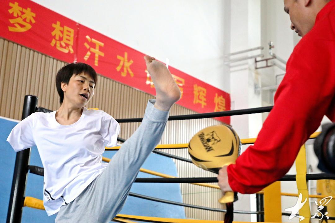 “一”“嘿!”,“二”“嘿!”,“三”“嘿呀!”,5月16日中午,在青岛西海岸新区一家跆拳道训练馆里,刘仕春正在练习跆拳道,看她训练,会被迅捷有力的腿法吸引,通常好久才反应过来,她没有胳膊!对,刘仕春是一位获过省级冠军的残疾人跆拳道运动员,同时,她还是一位高校教师。“不想生活太安逸了,我喜欢挑战自己。”刘仕春笑着说。