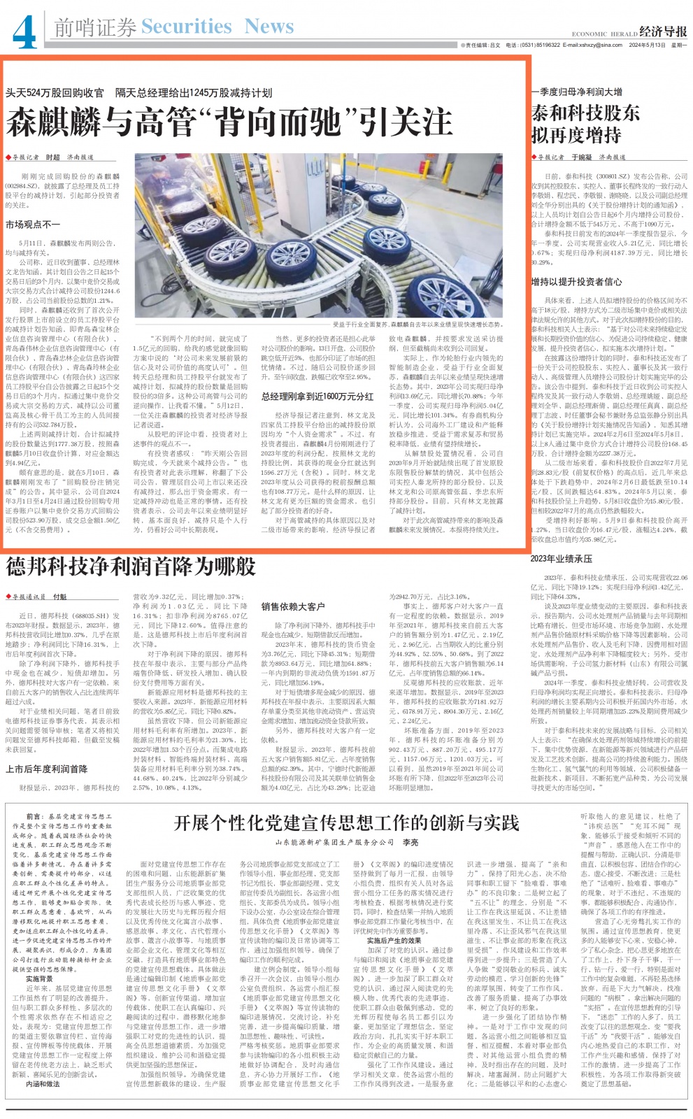经济导报记者就此也向森麒麟发送了采访提纲,但截至目前仍未收到公司回复。