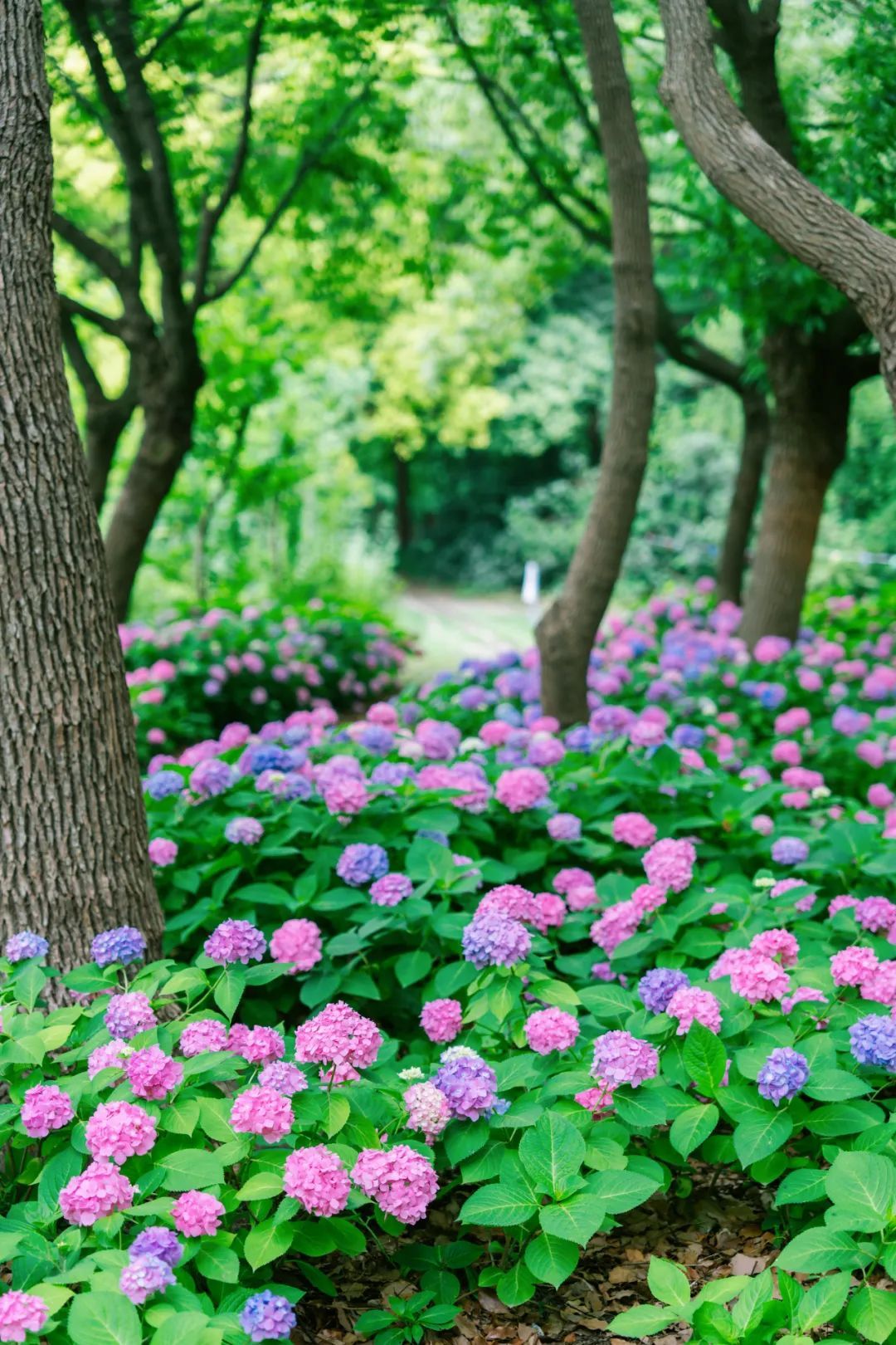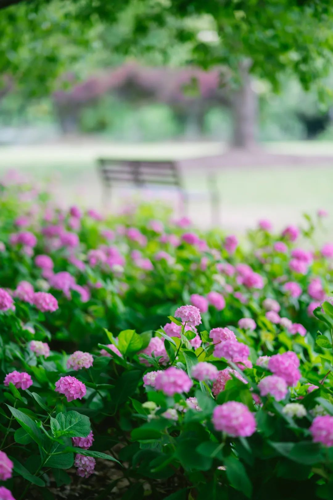 公园里一团团,一簇簇的八仙花正酝酿着绽放