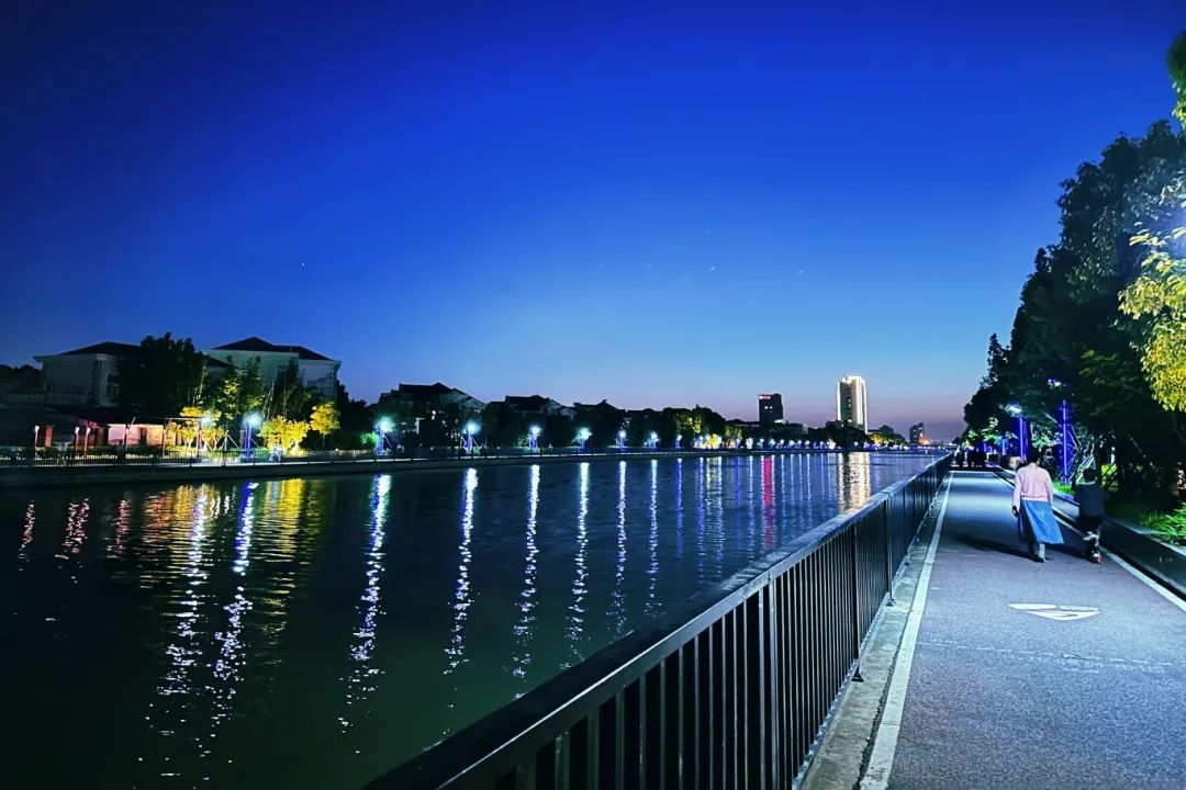 夜晚的淀浦河有了灯光效果的加持,变得更加迷人,在淀浦河沿岸,你可以沿着绿道悠闲地散步,或者来一场畅快淋漓的夜跑。