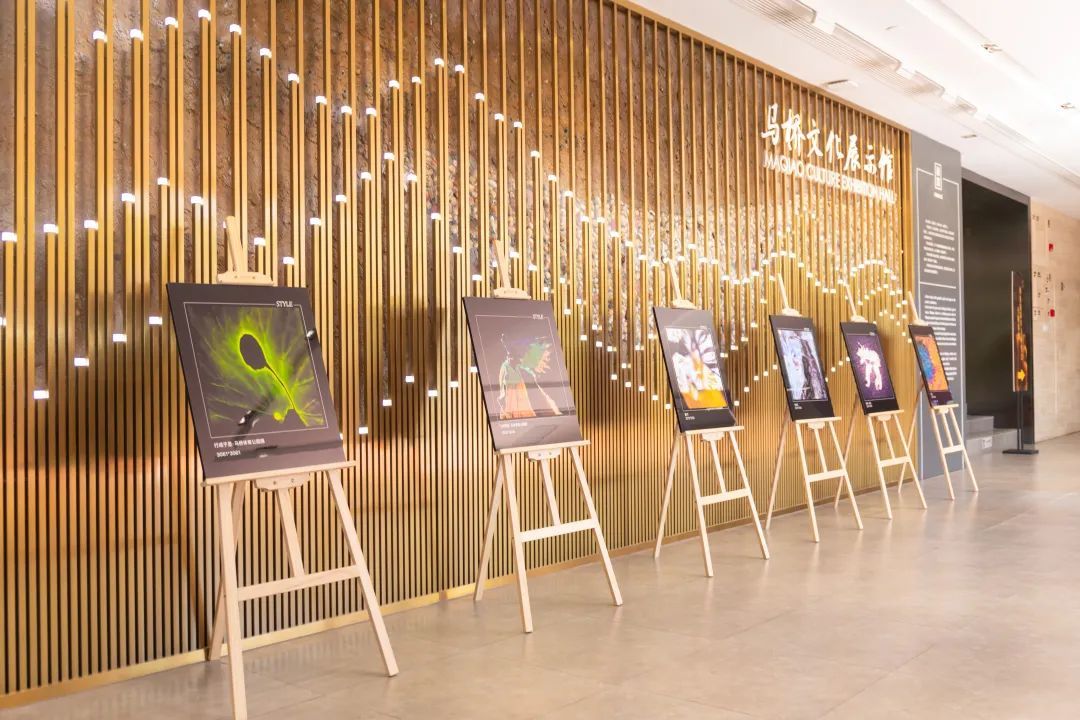 展览分为“古韵马桥·岁月回响”“寻迹马桥·浮光掠影”两大篇章,采用隔断式布展,多主题展示,局部特写与纱幔垂挂相结合,画作点缀墙面与垂挂版面,营造出错落有致的视觉效果。