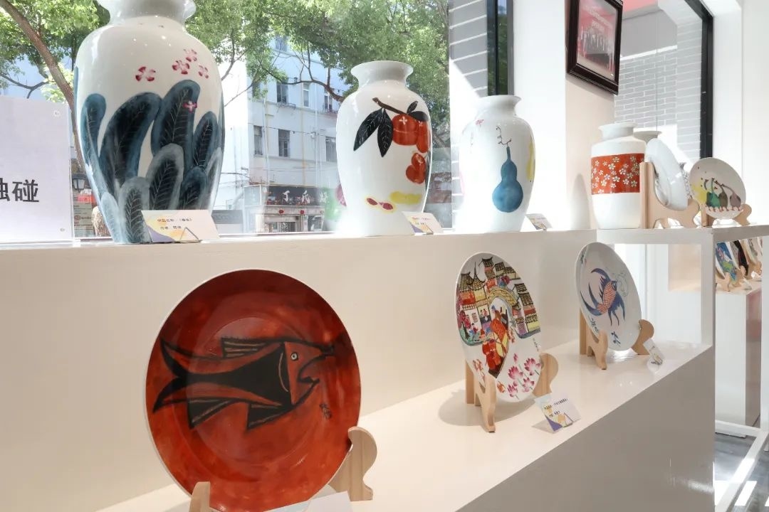 日前,金山农民画与景德镇陶瓷融合创作培训班成果展开幕仪式,在枫泾镇党群服务中心50空间拉开帷幕。