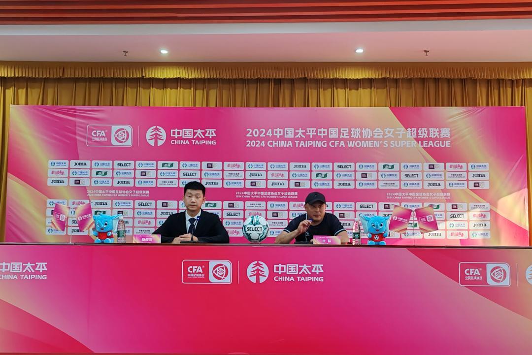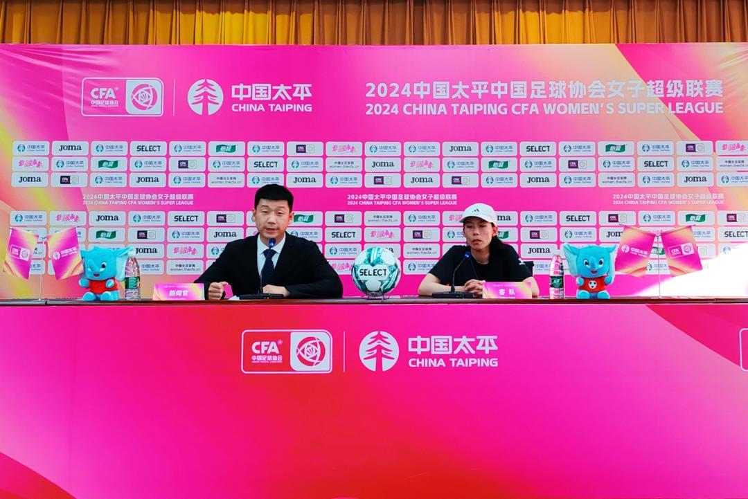 赛后新闻发布会环节,江苏无锡女足主教练陈婉婷,山东体彩女足主教练崔勇出席并接受记者提问。