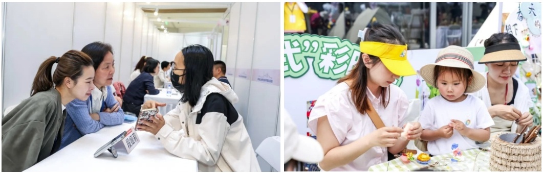 在本次活动主会场普陀区中海环宇城MAX中庭里,来自学前教育、幼儿保健、幼儿营养、幼儿心理等各个领域的专家“坐诊”,与家长一对一交流“小人国”里的“大事情”。户外天台变身充满童趣的露营地,小朋友们在天幕下抚触、摸爬、跑跳、涂鸦、律动……带动大朋友们也全心投入“重返童年”。
