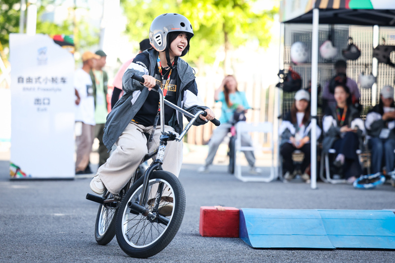 自由式小轮车展玩区内进行互动体验的观众和爱好者。